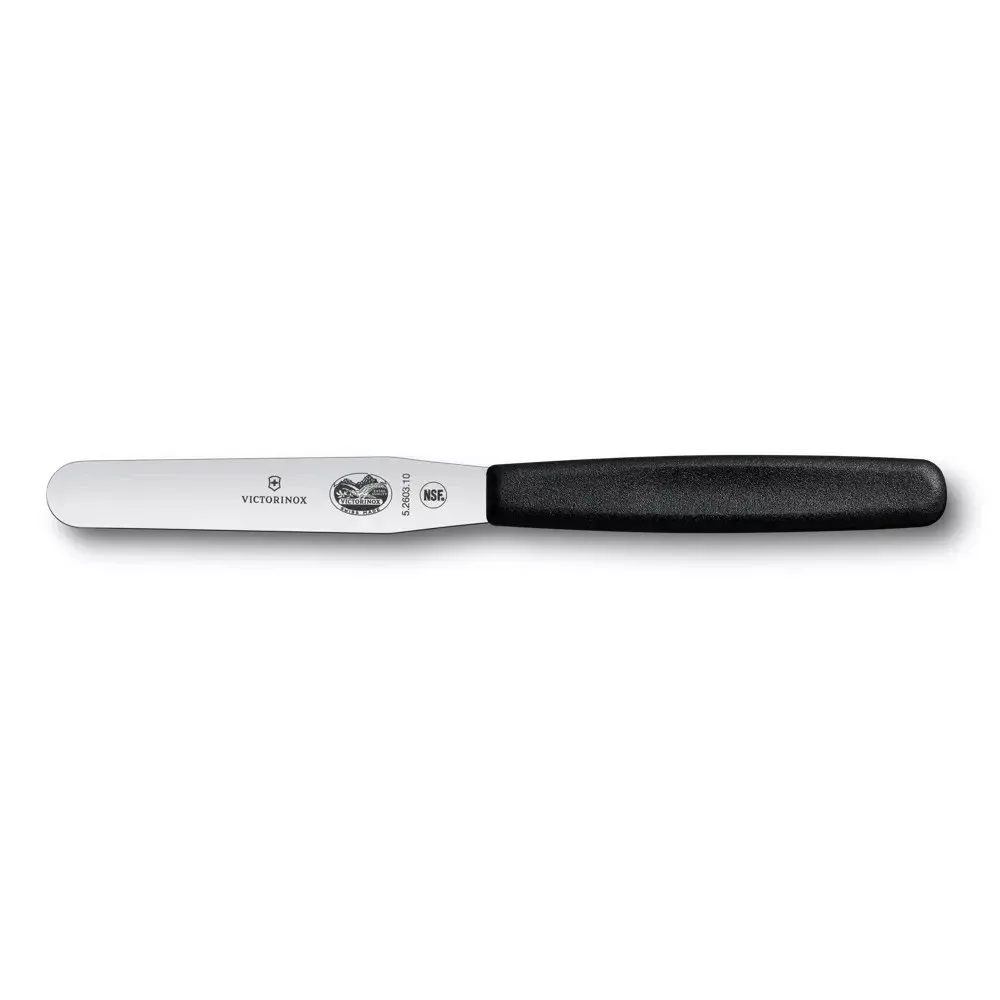 Victorinox Swiss Classic gyógyszerész spatula 10 cm hosszú pengével, fekete markolattal.