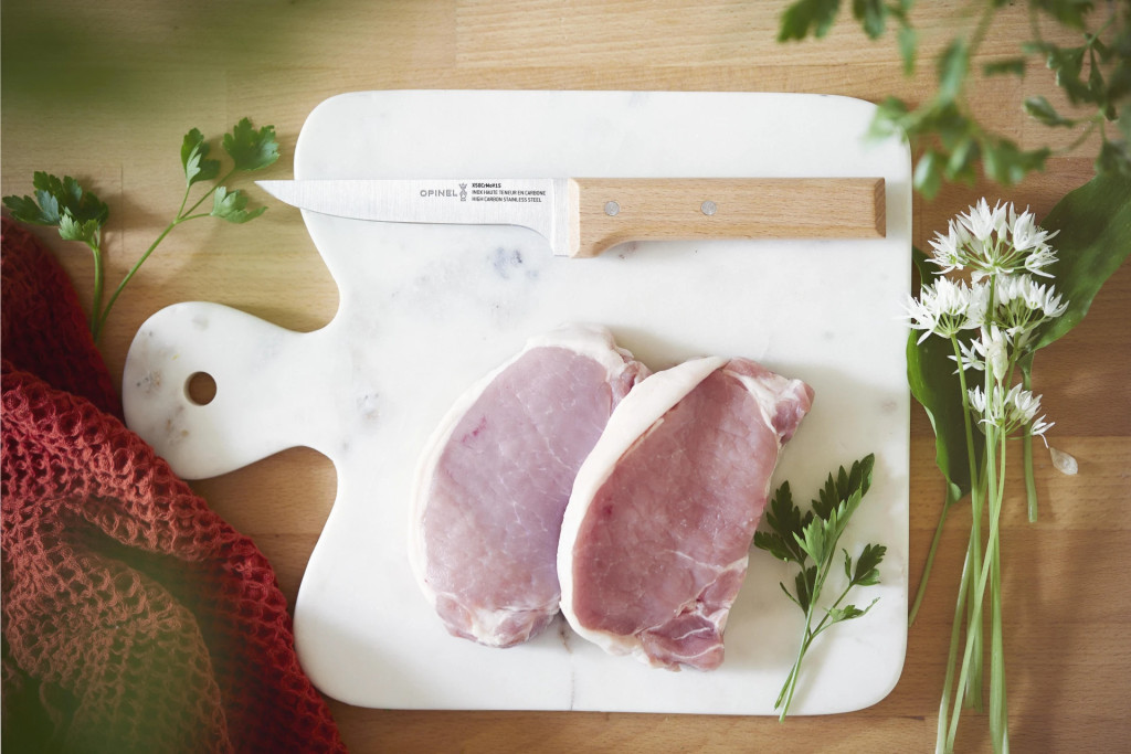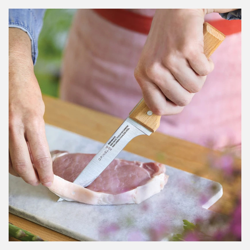 Húsok és baromfi idegeinek és csontjainak eltávolítására. A rövid és erős, 2,5 mm vastag penge ellenáll a csavarodásnak, a markolatvédő pedig megvédi a kezet a penge vágóélétől.