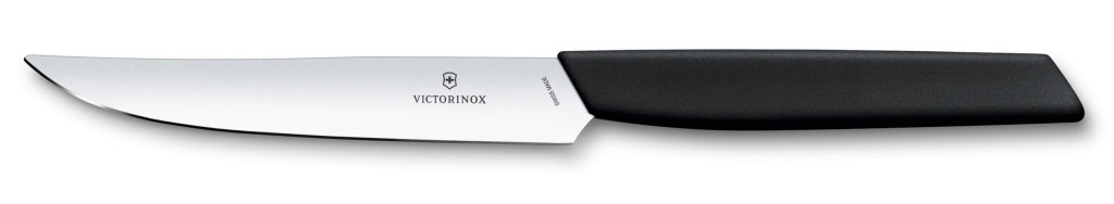 Modernizált, rozsdamentes acél megoldások. Az emberiség legfontosabb eszközének korszerűsítése.Ahol az igazi szépség találkozik az igaz minőséggel: az elegáns kialakítás nagy pontossággal párosul a Victorinox Swiss Modern kollekcióban. Minden penge kopásálló rozsdamentes acélból készül, hogy megkönnyítse a vágást. Gazdag szemcsés, különleges melegszínű európai diófa markolattal, vagy szuper karcsú, divatos szintetikus markolattal kapható, élénk színekben, vagy klasszikus fekete színben. Az áramvonalas markolatok nemcsak bármilyen konyhai dekoráció fénypontjai, hanem tökéletes egyensúlya az ergonómiának és a tartósságnak is, a tökéletes kényelem és a könnyű használat érdekében. Könnyen tisztítható, a szintetikus markolatos mosogatógépbe is tehető. A kollekció darabjai tökéletesen használhatók mindennapi konyhai feladatokhoz.