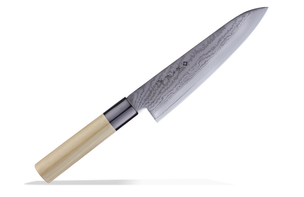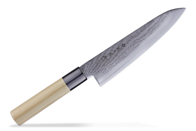 Tojiro Shippu DP Damascus Szakácskés 18 cm hosszú pengével, magnólia markolattal.