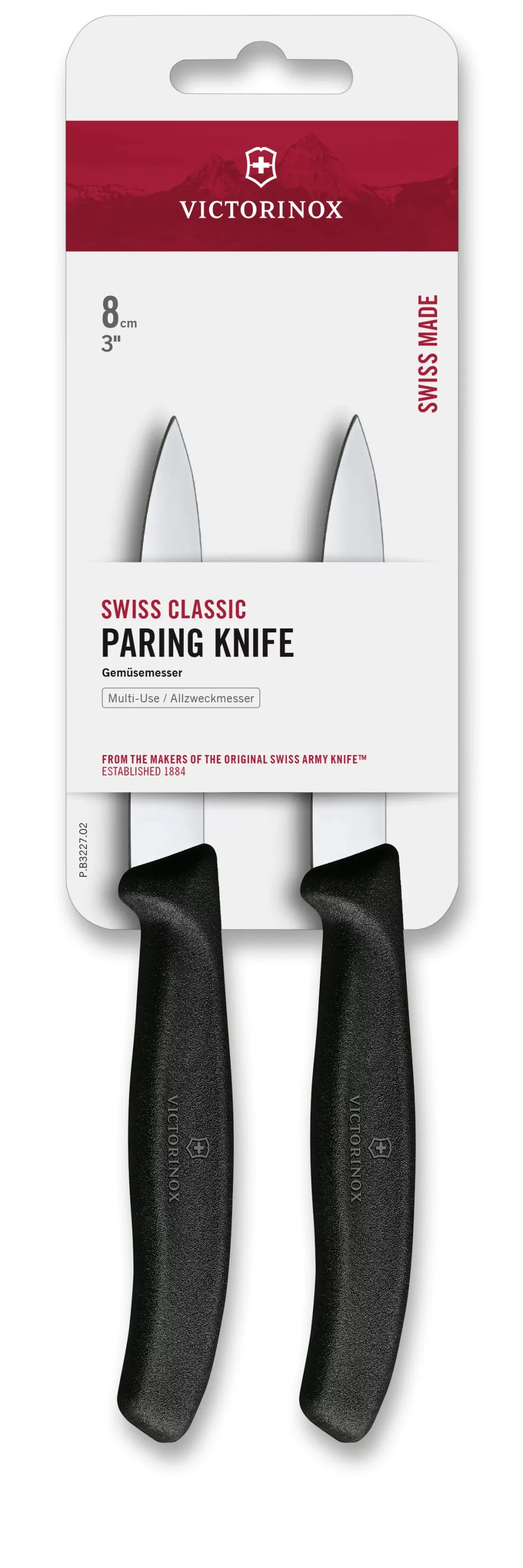 Swiss Classic | Zöldségkés | Egyenes | Hegyes | 8 cm | Fekete | 2 db | Bliszteres