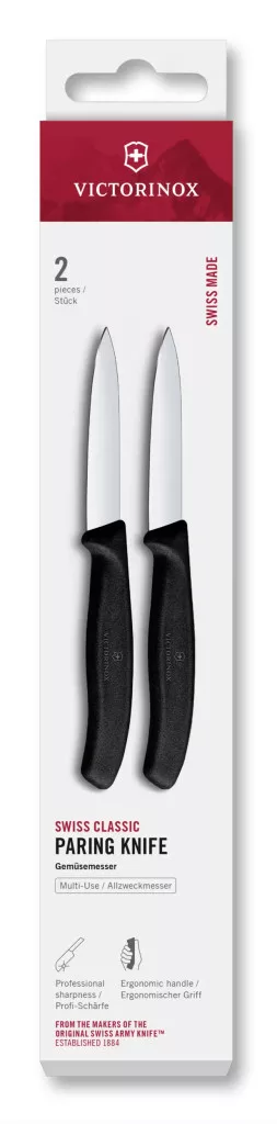 Éles pengékkel és hegyes végekkel ellátott aprítókéskészlet. Ez a kiskéskészlet professzionális, éles pengékkel, egyenes élekkel és hegyes végekkel rendelkezik, így sokoldalúan használható az előkészítési munkákhoz. Minden kés könnyű, ergonomikus markolattal rendelkezik, amely kényelmes és jó irányíthatóságot biztosít. Svájcban gyártott és mosogatógépben is mosható, ez a készlet precíziós és kényelmes megoldást kínál a mindennapi konyhai feladatokhoz.