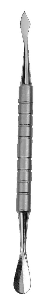 Ez a kétvégű manikűreszköz rozsdamentes acélból készült. Kanál alakú végével a felesleges körömágybőrt finoman visszatolhatja, míg a másik végén található éles körömkéssel finoman eltávolíthatja a köröm hátulján lévő laza szarurészecskéket.