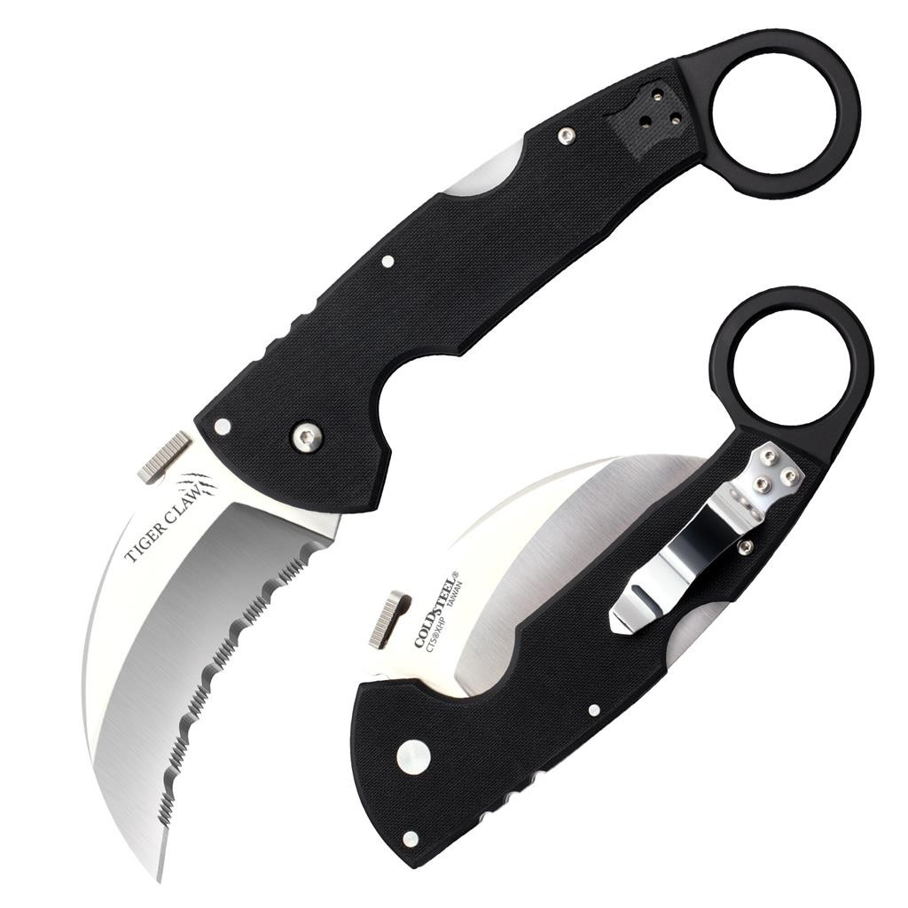 A penge Andrew Demko, villanyszerelő és mérnök, kiterjedt tesztelései és kísérletei alapján került kialakításra. Saját, többcélú, kézzel készített munkakéseihez saját Karambit / Hawkbill hibrid pengét készített, amely képes volt kötelet, kábelt, drótot és minden mást elvágni, ami a munkája során az útjába került. Ez a kés évekig jól szolgált neki a kemény használat során, és amikor a Cold Steel felkérte, hogy fejlessze ki saját összecsukható Karambit-kését, azonnal ez a pengeforma jutott eszébe. Andrew eredeti penge kialakítását lemásolva, de prémium S35VN acélból, a Tiger Claw a filippínó és indonéz harci Karambit taktikai vágási és szúró teljesítményét kínálja, a munkás Hawkbill hasznosságával és funkcionalitásával. A szabadalmaztatott Demko nyitólemezzel a Tiger Claw jobb és balkezes, gyors előhúzást biztosít a zsebéből, akár kardfogással, akár hagyományos, pengével lefelé irányuló karambit fogással, villámgyorsan és könnyedén előhúzva a pengét! Demko minimalista stílusában készült Tiger Claw vékony, CNC-megmunkált G-10 markolattal, matt fekete alumínium gyűrűvel és exkluzív Tri-Ad reteszelő rendszerrel rendelkezik. A Tri-Ad zár úgy lett kialakítva, hogy ellenálljon a hatalmas ütésnek, miközben szinte teljesen ellenáll a rázkódásnak, és az iparág legkeményebb tesztjein is megfelelt.