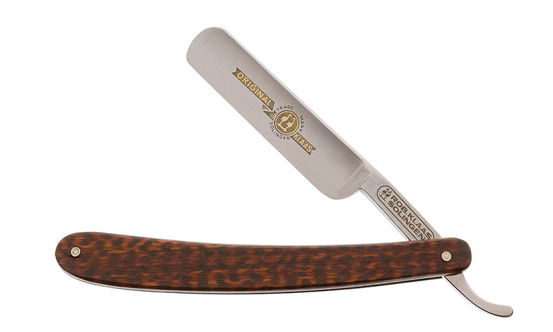 Hagyományos szénacél borotvakés arany maratással, egzotikus fa nyéllel. A Robert Klaas Solingen magas minősége garantálja a hosszú élettartamot.