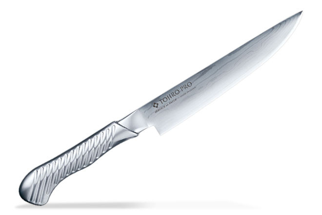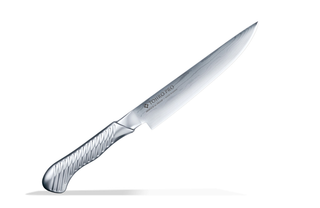 A Tojiro Japan késmanufaktúra háztartási felszereléseit méltán tartják a legkomolyabb gasztronómiában jártas emberek is kiemelkedően fontosnak. A gyártó filozófiája: művészi vágóeszközök és konyhai kiegészítők gyártása elérhető áron. Gyakran alkalmaznak VG-10 acélokat, - kovácsolt késeiknél nagyon gyakoriak a damasztált, illetve a “szendvicsacél-szerkezetű” kések. Mi az Extrametálnál két esetben szoktunk Tojiro késeket ajánlani: mikor a vásárló már képzett a konyhában, illetve ha értékeli a művészi megmunkálást, anyagot és a legmagasabb japán szintű kivitelezést. Persze, mint minden csúcsminőségű felszerelésnél, műtárgynál, vagy akár gépjárműnél, itt is számolnunk kell a fokozott mértékű karbantartási igénnyel. Rendszeres élezés és karbantartás mellett viszont egy ilyen konyhai kiegészítő életre szóló társunkká válhat.