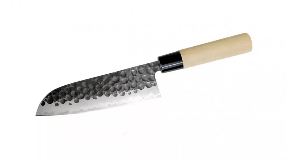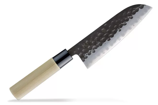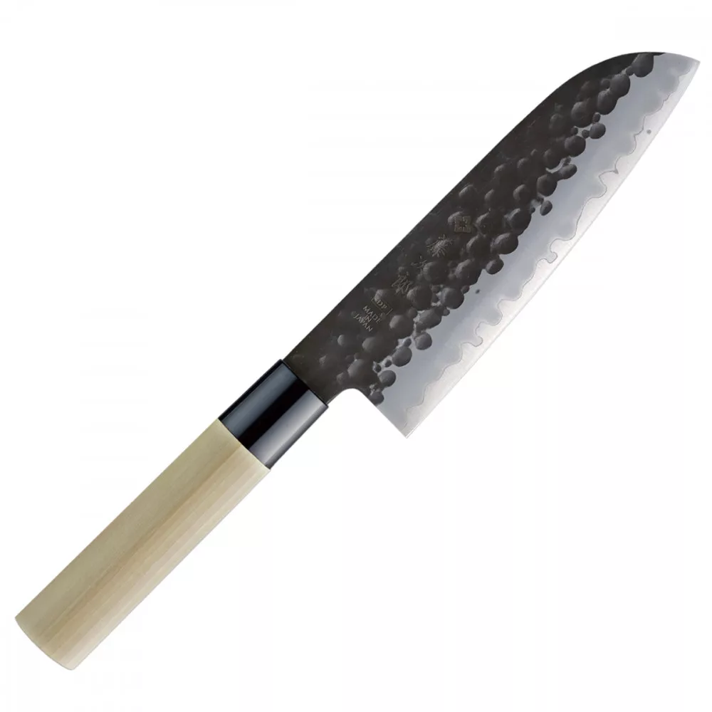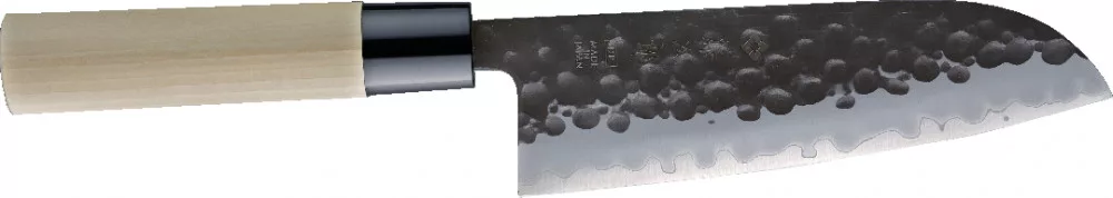 Ez a hagyomány és a modern technológia ötvözete. A mag VG-10 acélból, a külső rétegek pedig 13 Chrom rozsdamentes acélból készültek. A kurouchi felület általában könnyen rozsdásodik, de a penge felületére átlátszó bevonatot visznek fel, hogy megakadályozzák a rozsdásodást. A kalapált textúra nem csupán esztétikai elem, hanem hatékonyan megakadályozza az ételek a pengéhez való tapadását. A markolat sima textúrájú, vízálló japán magnóliafából készült.