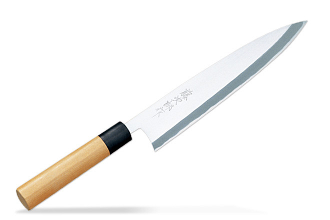 Tojiro Shirogami Thin Bladed Deba kés 21 cm hosszú pengével, magnólia markolattal.Tulajdonságok:Pengeanyag: Shirogami Steel + Soft IronPengehossz: 21 cmMarkolatanyag: magnólia, gyanta baknivalMarkolathossz: 15 cmTeljes hossz: 36 cmSúly: 255 g