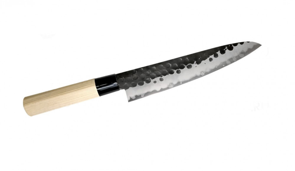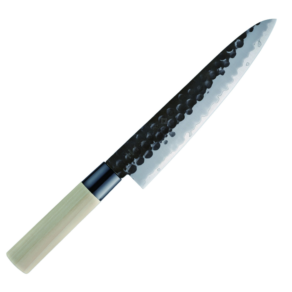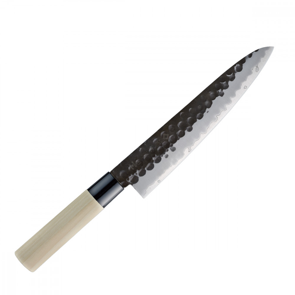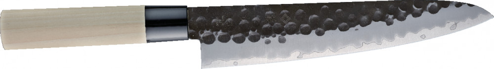 Ez a hagyomány és a modern technológia ötvözete. A mag VG-10 acélból, a külső rétegek pedig 13 Chrom rozsdamentes acélból készültek. A kurouchi felület általában könnyen rozsdásodik, de a penge felületére átlátszó bevonatot visznek fel, hogy megakadályozzák a rozsdásodást. A kalapált textúra nem csupán esztétikai elem, hanem hatékonyan megakadályozza az ételek a pengéhez való tapadását. A markolat sima textúrájú, vízálló japán magnóliafából készült.