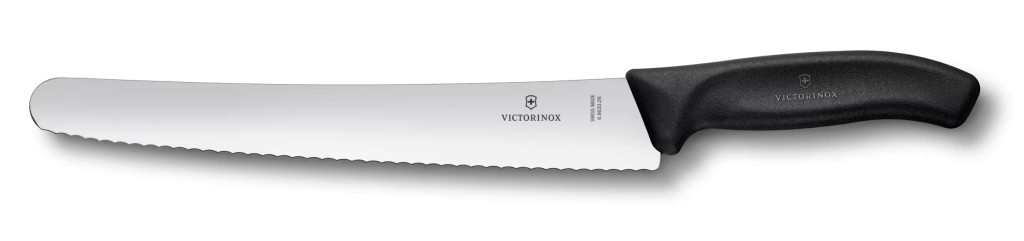 Éles kés kenyér és péksütemények szeleteléséhez. Ez a kenyér- és péksüteménykés professzionális, éles rozsdamentes acél pengével rendelkezik, amely recés élével könnyedén szeleteli a süteményeket. Könnyű, ergonomikus markolata kényelmes és biztos fogást garantál használat közben. Svájcban gyártott, mosogatógépben is tisztítható, tartós megbízhatóságra tervezve.