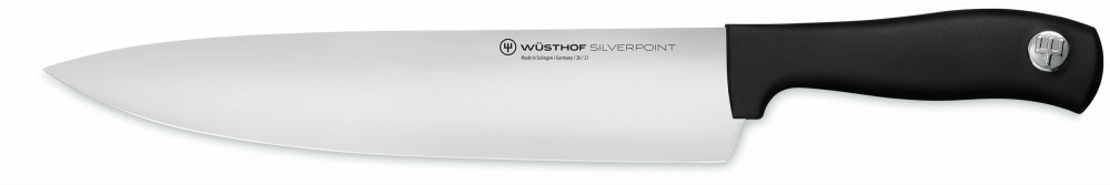 Wüsthof Silverpoint Szakácskés 23 cm-es pengével, fekete markolattal.Tulajdonságok:Pengeanyag: 56 HRC keménységű hengerelt rozsdamentes X50CrMoV15 acélPengehossz: 23 cmPengeszélesség: 4,17 cmMarkolat: szintetikusTeljes hossz: 35,6 cmSúly: 155 gTovábbi gyártói információk:Ez a legfontosabb a konyhában használt…