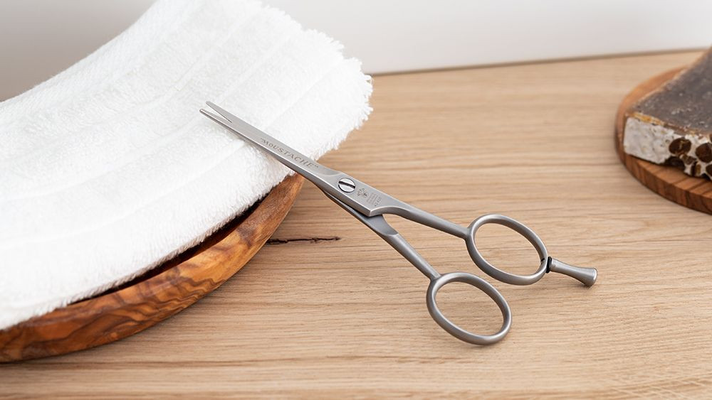 Dovo 43 Szakáll és Bajuszvágó Olló rozsdamentes acél, mikrofogazott, lekerekített heggyel, matt felülettel.