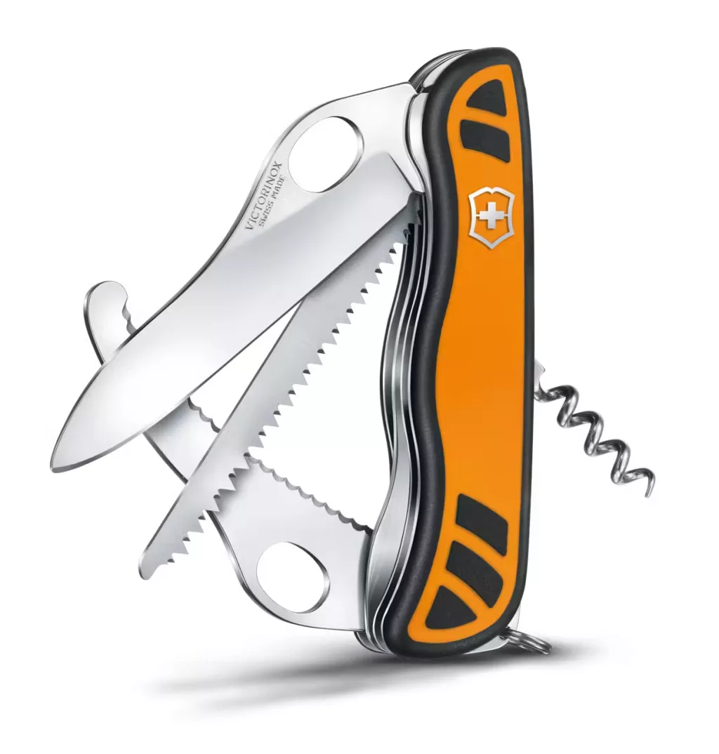 Victorinox Hunter XT Grip nagyméretű zsebkés narancs/fekete csúszásmentes kétkomponensű panelekkel, 6 funkcióval és zsigerelővel.